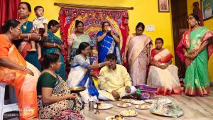 বেচারাম বাবুর দিদিরা এবং বোনেরা তার কপালে ফোঁটা দিয়ে ভাইয়ের দীর্ঘায়ু কামনা করেন। প্রদীপ জেলে ধান দূর্বা দিয়ে বেচারাম বাবুকে আশীর্বাদ করেন দিদিরা। আদরের ভাই বেচারাম দিদিদের পায় প্রণাম করে আশীর্বাদ প্রার্থনা করেন।